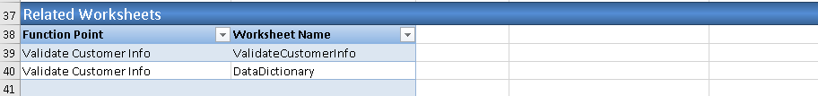 =IF(AlchemyJ_FunctionPoint = "Validate Customer Info", ajCheckDataItem( B7:B11, C7:C11, AlchemyJ_DataDic_tbl[#All], DataDictionary!AlchemyJ_DataDicErrorDef, TRUE ), "" )