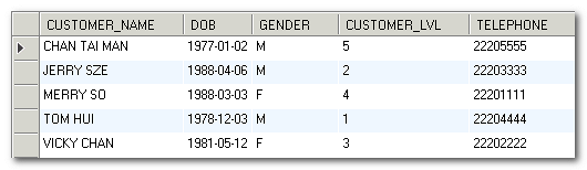 We will use the following table in our examples. The table name is tb_customer. It has 5 columns and 5 rows.