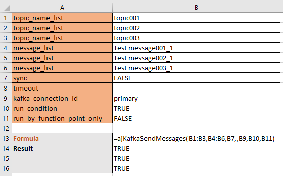 Please take note that to run this function from Excel, you would need to set up the Kafka Connection in ##ExternalResources.